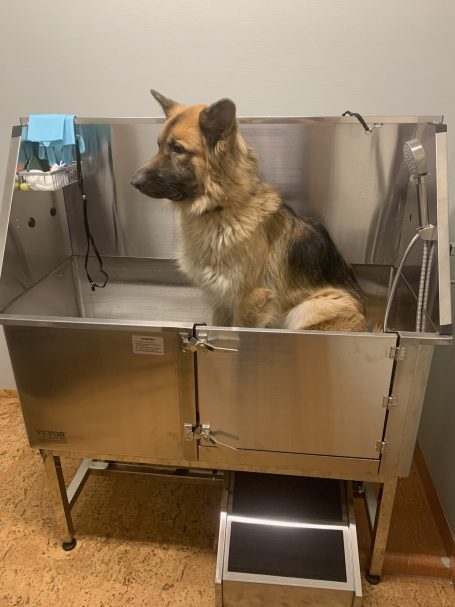 Vi kan även erbjuda "Självbad" där ni själva badar er hund i vårt hundbadkar.